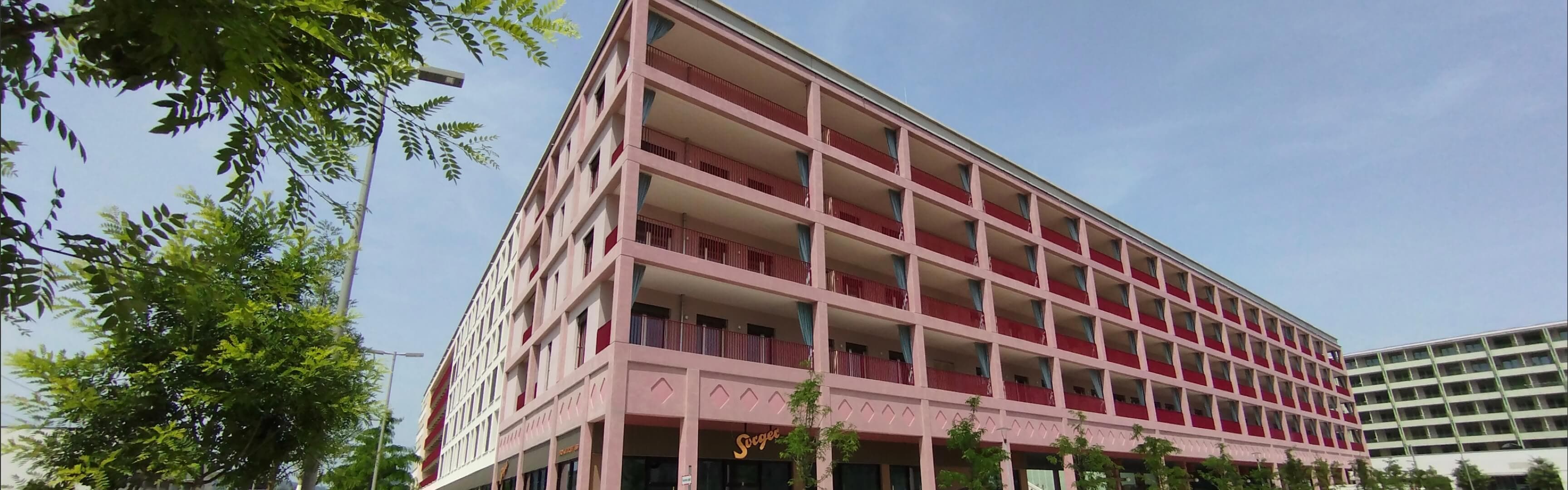 Als Quadrat gebaute Wohnkomplex mit 360 Wohnungen in 5 Bauteilen
